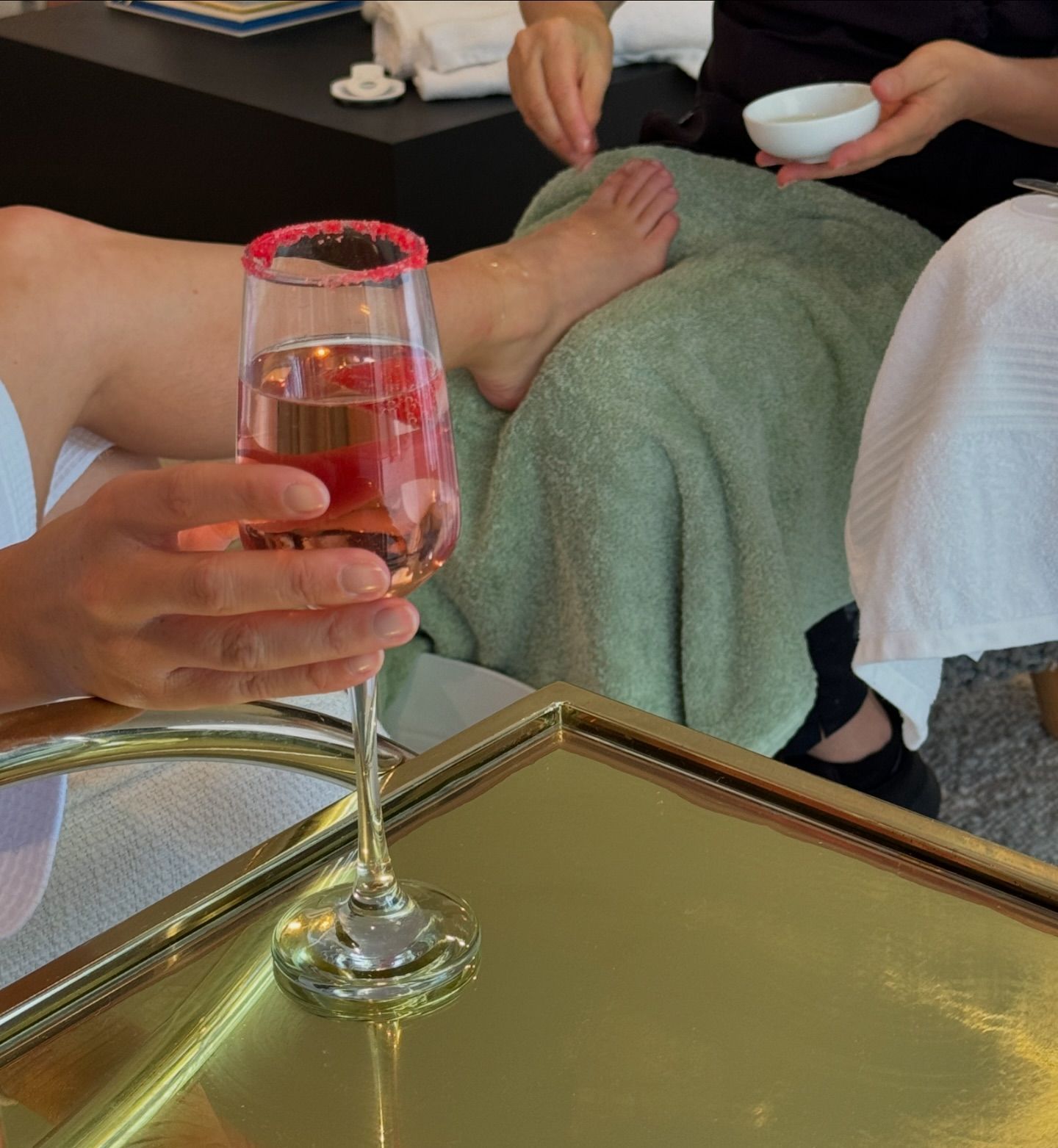 Enjoying a pedicure in the comfort of there holiday AirBNB
